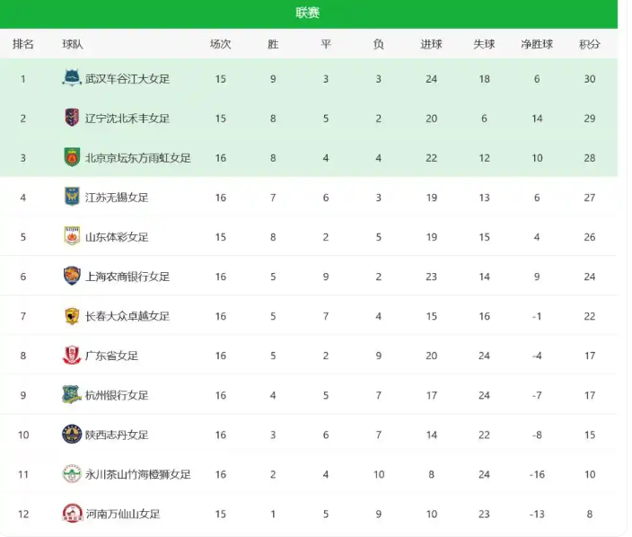 联赛中下游的竞争同样胶着。上海农商银行女足在战胜武汉后保持8轮不败,长春大众置业女足也取得5轮不败,两队同积21分。广东、陕西和永川三支球队在最近5轮比赛中均取得不俗战绩,积分差距进一步缩小。相比之下,杭州和河南女足持续低迷,遭遇7轮不胜的困境。